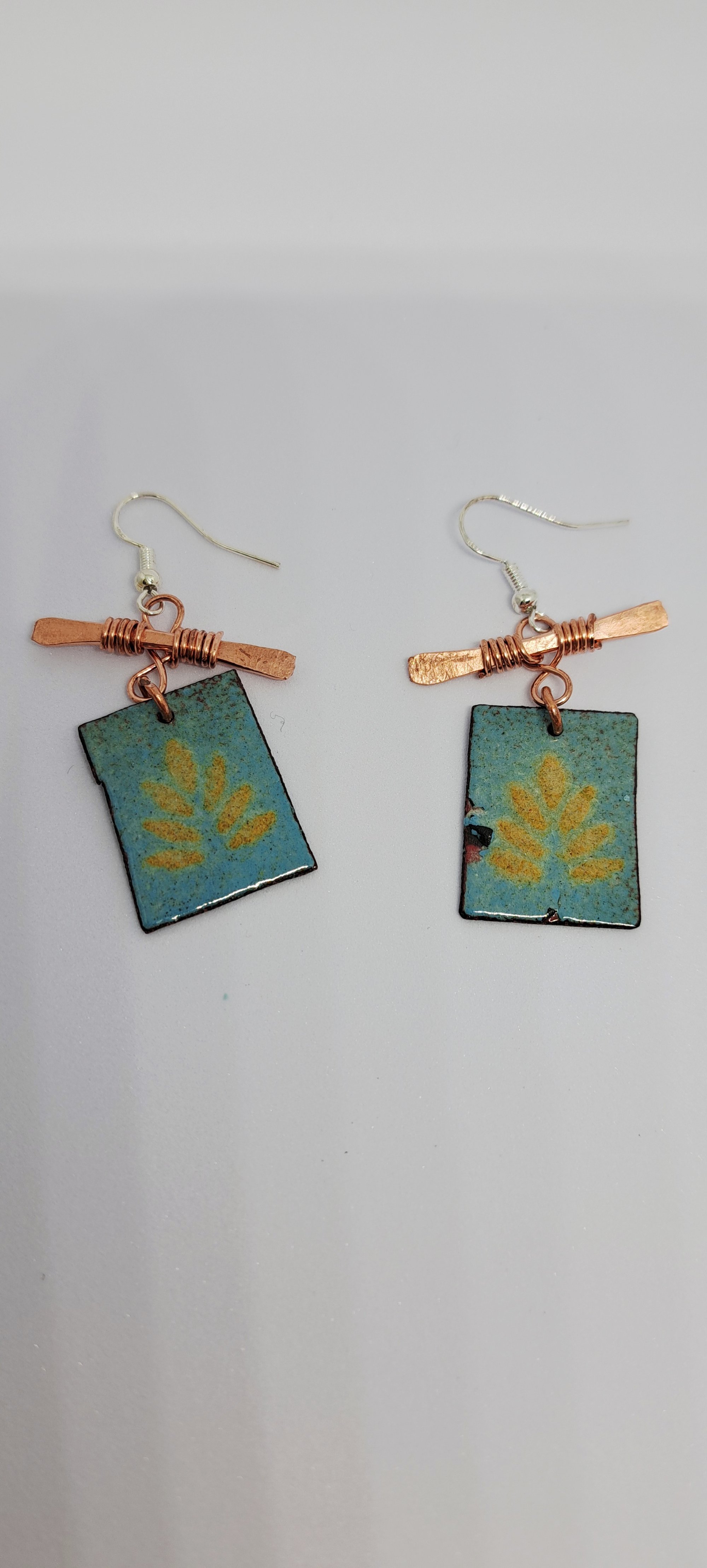 The earwires are silver so kind on ears. Solid copper bar with copper wire.